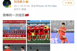 在和中國(guó)香港隊(duì)比賽結(jié)束后,劉浩帆更新社媒,曬出球隊(duì)全家福和比賽照等,并配文寫(xiě)道:“很棒的一次經(jīng)歷。”