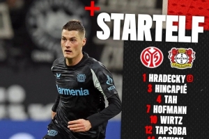 體育資訊5月17日訊 北京時間今天晚上21點(diǎn)30分,勒沃庫森將在德甲第34輪比賽中客場對陣美因茨,勒沃庫森公布了此役的首發(fā)陣容,