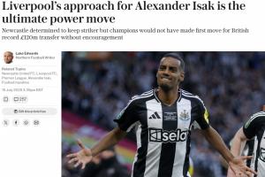 多方消息透露稱,利物浦已向紐卡斯爾表達了以約1.2億英鎊簽下伊薩克的興趣,但尚未正式報價。
