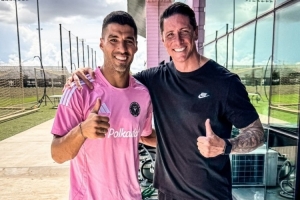 托雷斯造訪邁阿密國際俱樂部,與蘇亞雷斯合影,蘇亞雷斯社媒曬出合照,配文“傳奇”,并@馬競和利物浦。