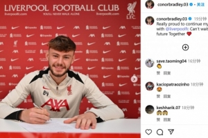 在個(gè)人社媒,布拉德利慶祝續(xù)約,他寫(xiě)道:非常自豪能與利物浦一起繼續(xù)我的旅程,迫不及待想和你們迎接新的未來(lái)。