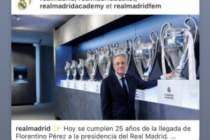 弗洛倫蒂諾迎來擔任皇馬主席25周年紀念日,俱樂部社媒發(fā)文致敬,本澤馬轉發(fā)了皇馬俱樂部的社媒動態(tài)。