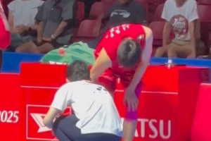 體育資訊7月17日訊 在剛剛結(jié)束的日本羽毛球公開賽男單第二輪中,中國選手李詩灃在先下一局的情況下遭遇腳部傷病,因傷退賽。