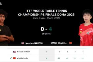 體育資訊05月18日訊 2025多哈世乒賽,男子單打第1輪,王楚欽4-0戰(zhàn)勝納雷什晉級64強。
