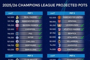 目前,下賽季歐冠36強(qiáng)已確定20席。