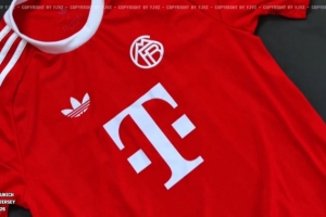 這款球衣由阿迪達斯設計,主色調為紅色,贊助商標志、阿迪達斯三葉草、拜仁傳統(tǒng)隊徽為白色。