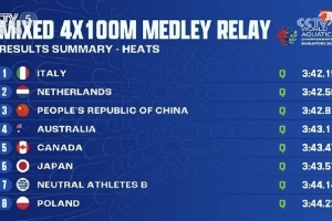 世錦賽男女4x100米混合泳接力:中國(guó)隊(duì)第三晉級(jí)決賽 美國(guó)隊(duì)遭淘汰