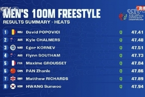 世錦賽男子100米自由泳預(yù)賽:潘展樂(lè)第六晉級(jí)半決賽,王浩宇出局