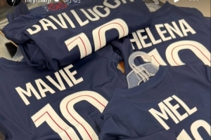 巴黎俱樂部向內(nèi)馬爾一家贈(zèng)送球衣,內(nèi)馬爾社媒曬出球衣照片,配文:“感謝巴黎。”