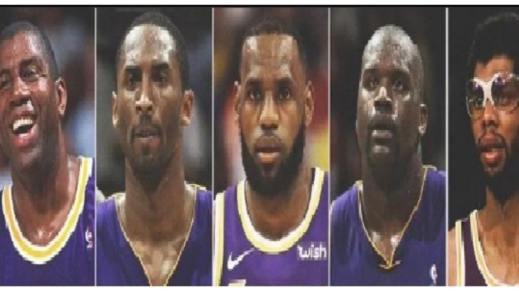 體育資訊7月21日訊 今日湖媒Dashy2曬出了一張五人組,圖中有科比、魔術(shù)師、詹姆斯、奧尼爾和賈巴爾。