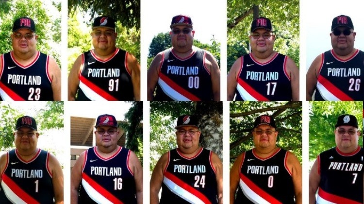 體育資訊7月21日訊 一個網(wǎng)名叫Oscar的開拓者鐵粉把球隊下賽季的球衣幾乎都買到了手,他穿上了每一件完成拍照還傳到了社媒上,其中就有16號楊瀚森的球衣。