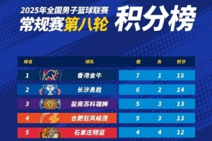 【積分榜】2025年NBL常規(guī)賽積分榜(截止至第八輪結束)。