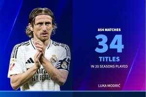 莫德里奇:39歲,身價(jià)400萬。20個(gè)賽季,854場,34冠