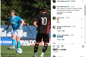 德布勞內(nèi)社媒曬出比賽照片,并配文:“很高興在今天上演首秀,這些比賽時間有助于恢復(fù)狀態(tài),讓我們繼續(xù)努力?!?/p>