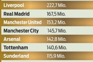 體育資訊7月23日訊?知名拜仁自媒體號(hào)Bayern & Germany轉(zhuǎn)載了一則今夏足壇在支出上排在前列的俱樂部盤點(diǎn),拜仁被列在了最下面作為對(duì)比。