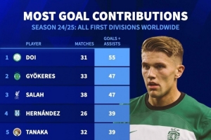 體育資訊7月23日訊 德國(guó)轉(zhuǎn)會(huì)市場(chǎng)統(tǒng)計(jì)了球員上賽季在頂級(jí)聯(lián)賽(指各國(guó)一級(jí)聯(lián)賽)的參與進(jìn)球數(shù)量,并列出榜單,土井智之在新加坡聯(lián)賽參與55球居首,約克雷斯、薩拉赫排名前三。