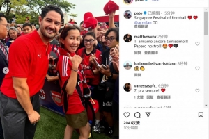米蘭將在新加坡的季前賽中對(duì)陣阿森納,米蘭名宿帕托在新加坡參加季前賽活動(dòng),曬出與球迷的合照,配文:“新加坡足球節(jié)日?!?/p>