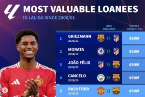 體育資訊7月24日訊 巴薩已經(jīng)官宣租借曼聯(lián)前鋒拉什福德,《轉(zhuǎn)會(huì)市場(chǎng)》統(tǒng)計(jì)顯示后者也是新世紀(jì)西甲租借的身價(jià)并列第二貴球員。