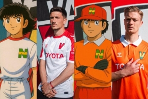 新發(fā)布的客場球衣以白色為主,搭配紅色條紋,其設計靈感來自動漫主角之一奧利弗-阿頓(Olivier Atton)所穿的球衣。守門員的橙色球衣則與動漫中的托馬斯-普賴斯(Thomas Price)的球衣如出一轍,僅將“N”標志替換為瓦朗謝訥的“V”。