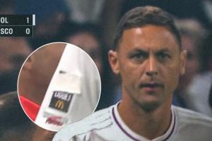 體育資訊05月18日訊 里昂中場內(nèi)馬尼亞-馬蒂奇在昨晚里昂對(duì)陣昂熱的比賽中,在袖子上遮住了反恐同標(biāo)志。