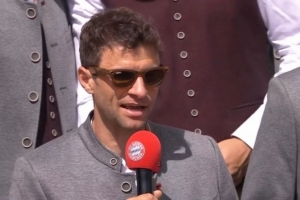 在拜仁奪冠慶典中,穆勒發(fā)表講話深情感謝球迷。