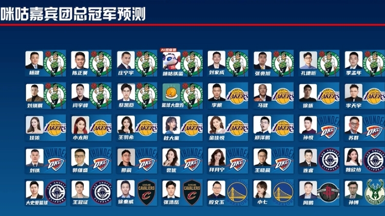 咪咕嘉賓團季前賽開始前的總冠軍預(yù)測,目前僅剩蘇群、孫悅等8位雷霆支持者。