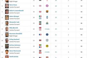 本賽季歐洲金靴前十(含并列)