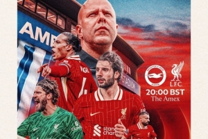 利物浦官方社媒發(fā)布了為此役制作的海報(bào),主帥斯洛特?cái)y范迪克、薩拉赫、索博斯洛伊、阿利森出鏡。