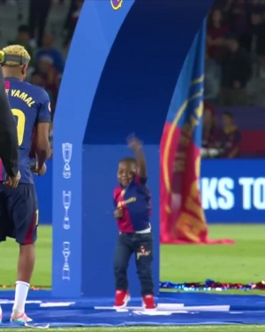 西甲冠軍頒獎典禮上,亞馬爾與弟弟凱恩(Keyne)斗舞