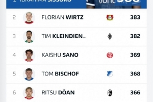 據(jù)日本博主“Japan Soccer Fan”援引德甲官方數(shù)據(jù)統(tǒng)計,在德甲聯(lián)賽官方公布的對抗成功數(shù)統(tǒng)計中,佐野海舟和堂安律也都在榜,其中佐野海舟以369次成功對抗排在聯(lián)賽第4位,堂安律也是以366次位列第6位。