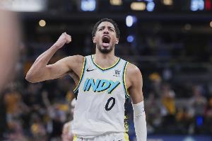 體育資訊5月14日訊 NBA季后賽次輪G5,步行者半場52-56落后于騎士。