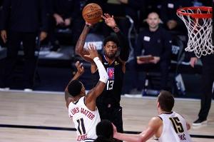 2020年西部半決賽,快船曾3-1領(lǐng)先掘金,隨后被逆轉(zhuǎn)出局。在系列賽搶七,喬治曾底角三分投到籃板側(cè)沿。