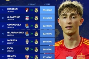體育資訊5月20日訊 德國轉(zhuǎn)會市場網(wǎng)統(tǒng)計表明,懷森超過了哈維-阿隆索,成為皇馬隊史簽下的最貴的西班牙球員。