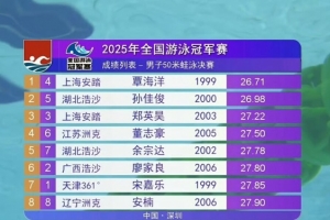 體育資訊5月20日訊 在剛剛結(jié)束的全國游泳冠軍賽男子50米蛙泳決賽中,名將覃海洋奪冠。