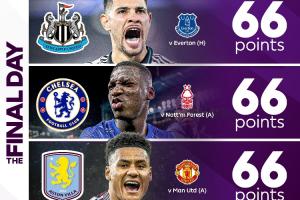 英超第38輪將開(kāi)啟終極大戲:爭(zhēng)五。5支隊(duì)伍將爭(zhēng)奪3個(gè)歐冠名額,末輪之前曼城68分,紐卡、切爾西和維拉均是66分,諾丁漢森林65分。
