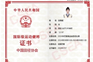 收到了巴黎奧運(yùn)會(huì)的國(guó)際健將證。我在2018年就達(dá)標(biāo)了國(guó)際健將,但我只想用奧運(yùn)會(huì)的成績(jī)來(lái)辦國(guó)際健將證,因?yàn)槲覉?jiān)信我會(huì)參加奧運(yùn)會(huì),不是奧運(yùn)會(huì)的國(guó)際健將證我寧愿沒(méi)有;我在2015年就達(dá)標(biāo)了一級(jí)運(yùn)動(dòng)員,但我從沒(méi)辦一級(jí)運(yùn)動(dòng)員證,因?yàn)槲蚁嘈盼铱隙〞?huì)是健將。