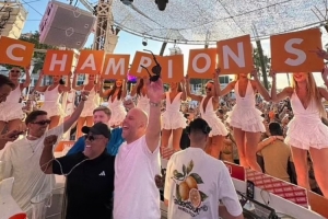 英國(guó)演員迪恩-加夫尼等人拍下了他的照片,當(dāng)時(shí)酒吧里播放著皇后樂(lè)隊(duì)的《我們是冠軍》,一群年輕女孩舉著寫(xiě)有“冠軍”的卡片歡迎他。