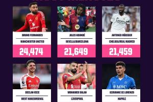 五大聯(lián)賽自2020年2月1日以來為俱樂部出場時間排名(非門將球員)