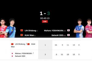 體育資訊05月21日訊 世乒賽混雙1/4決賽,世界排名第1的林詩棟/蒯曼對陣世界排名第21的日本組合吉村真晴/大藤沙月,最終林詩棟/蒯曼1-3不敵對手,止步8強。