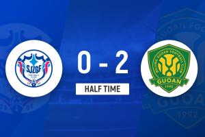 上半場補時1分鐘。半場戰(zhàn)罷,石家莊功夫0-2國安。