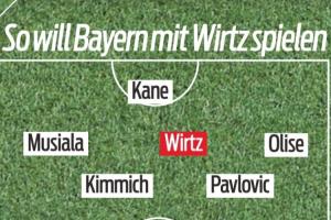 體育資訊05月14日訊 體育圖片報(bào)預(yù)測了下賽季拜仁的陣容。拜仁計(jì)劃讓維爾茨擔(dān)任10號位,并讓穆西亞拉擔(dān)任左邊鋒。在4231陣型之中,維爾茨和穆西亞拉能夠在場上互換位置。