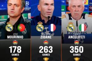 263場比賽,11座冠軍獎杯(歐冠×3、世俱杯×2、歐洲超級杯×2、西甲×2、西班牙超級杯×2)