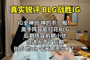 賽后B站up“真實電競”發(fā)布視頻銳評:IG全神班,神的不一般,高手陣容能打花BLG,后期陣容前期小優(yōu)但進入不了后期,BLG的ON今天太惡心了。