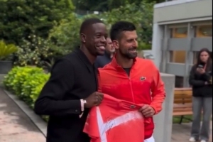 比賽之余,德約科維奇和瑞士足球運動員扎卡里亞碰面,德約科維奇向扎卡里亞送上了簽名球衣。