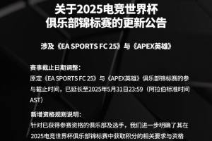 體育資訊5月22日訊 EWC官方發(fā)布關于2025電競世界杯俱樂部錦標賽更新公告,EA Sports FC25和APEX英雄參與截止時間延長至5月31日。