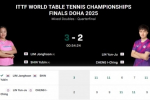 體育資訊5月22日訊 2025多哈世乒賽混雙1/4決賽:林仲勛/申裕斌3-2擊敗林昀儒/鄭怡靜,晉級(jí)四強(qiáng)。