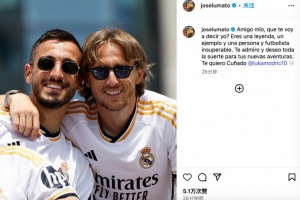 體育資訊5月23日訊 克羅地亞中場莫德里奇將在本賽季結(jié)束后離開皇馬,他的前隊(duì)友何塞盧在個(gè)人INS上發(fā)文,致敬魔笛。
