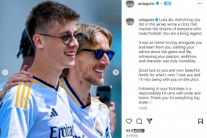 居勒爾:你身披這件球衣所做的一切,都書寫成了一段激勵所有熱愛足球之人夢想的故事。你是一位活著的傳奇。與你并肩作戰(zhàn)并從你身上學習是我的榮幸。聆聽你關(guān)于比賽和生活的建議,見證你的激情、雄心和品格,真是令人難以置信。