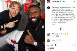 體育資訊5月23日訊 呂迪格發(fā)文祝福了莫德里奇,后者即將離隊。