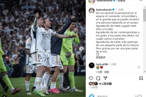 巴爾韋德社媒曬出與莫德里奇的合照,并寫道:“從你那里,我學(xué)會了堅持不懈,學(xué)會了等待時機,學(xué)會了謙遜,以及一個人通過球場上的言行可以變得多么偉大。